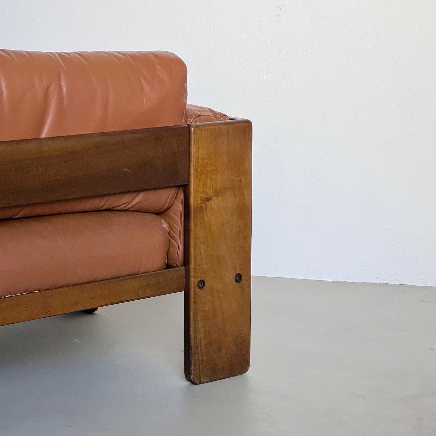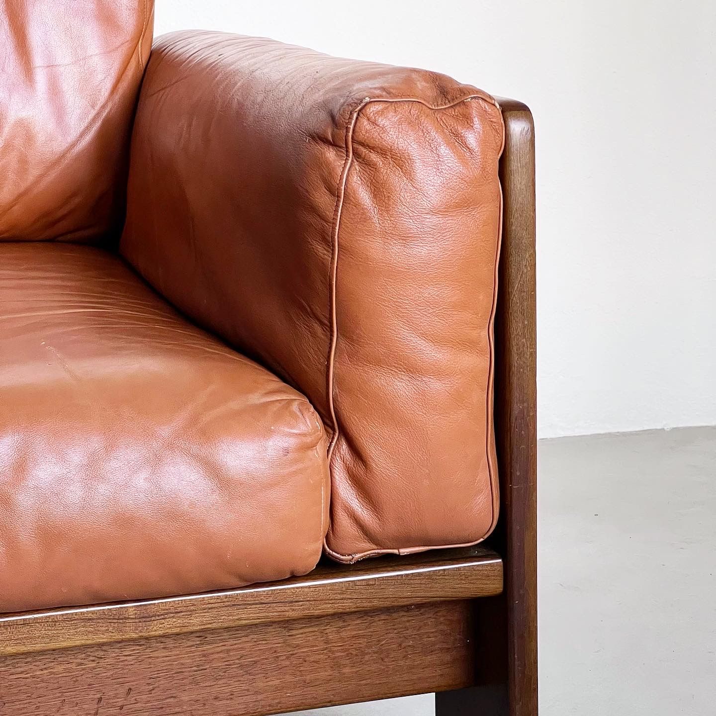Designed by Afra and Tobia Scarpa, the Bastiano sofa incorporates all the distinctive features and quirks of the couple’s most famous designs, from the geometric frame with flat legs – see the Monk and Cassina 121 chairs – and center leg on the back (same as the Pigreco chair) to the choice of materials, with a similar shade of brown also appearing on the Coronado sofas or the Accademia chairs.