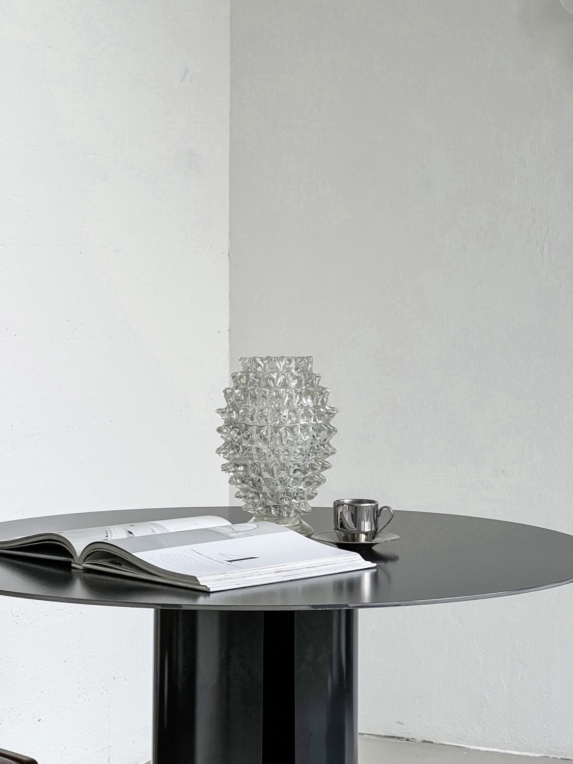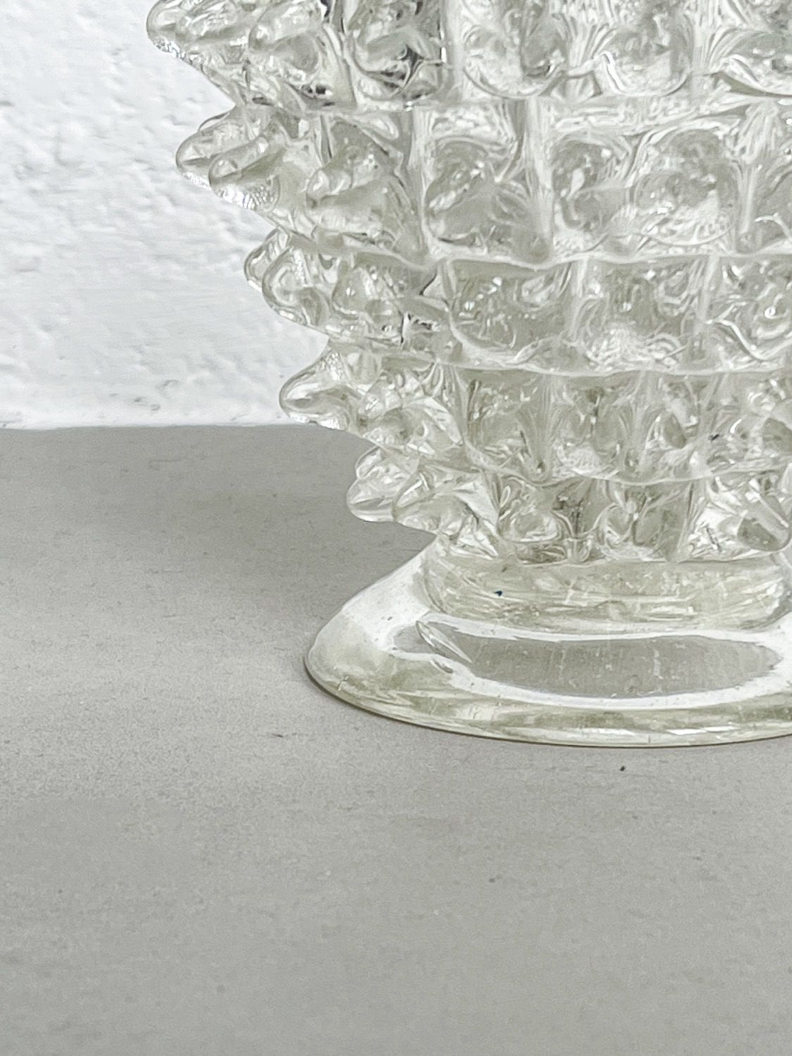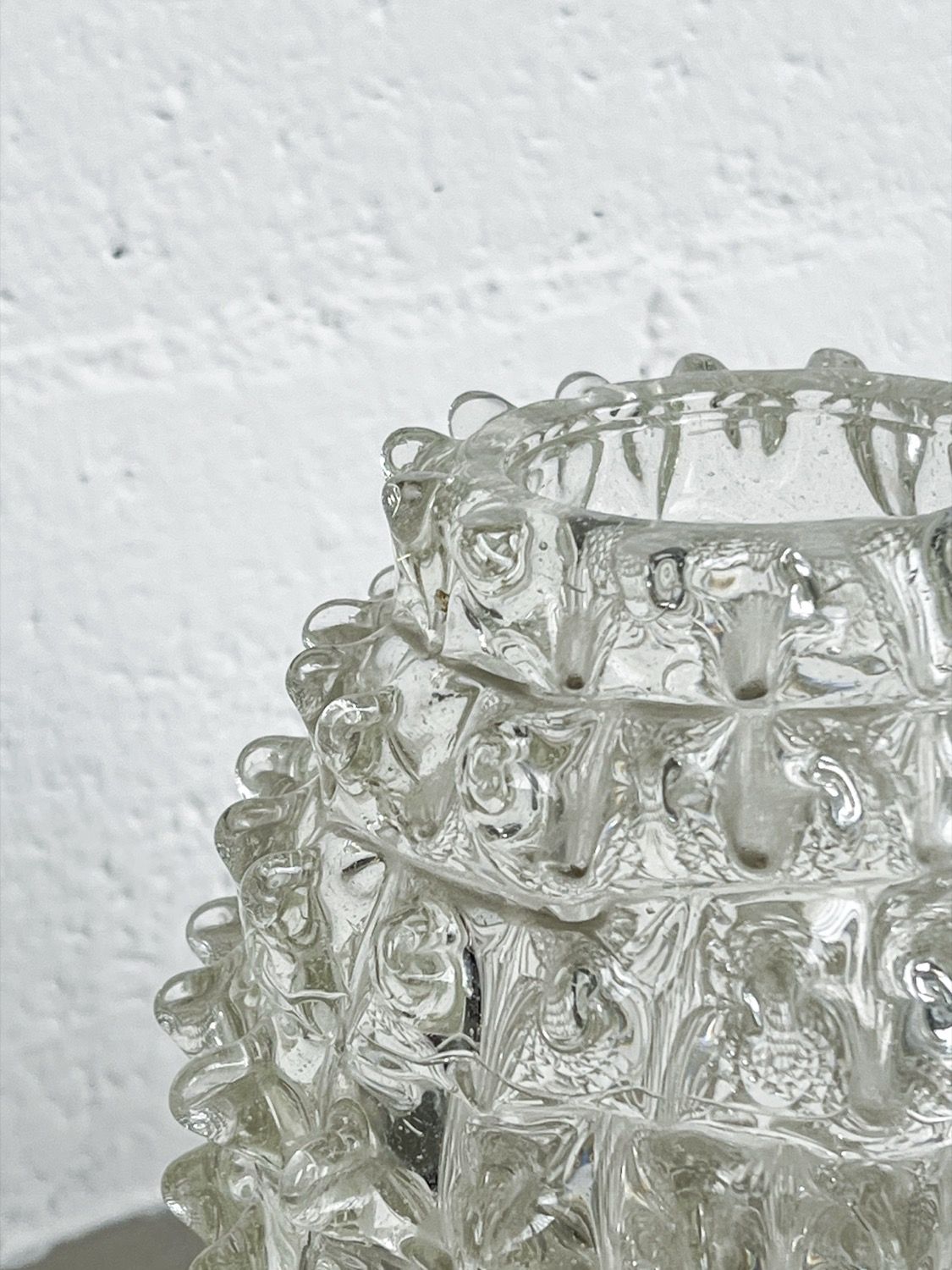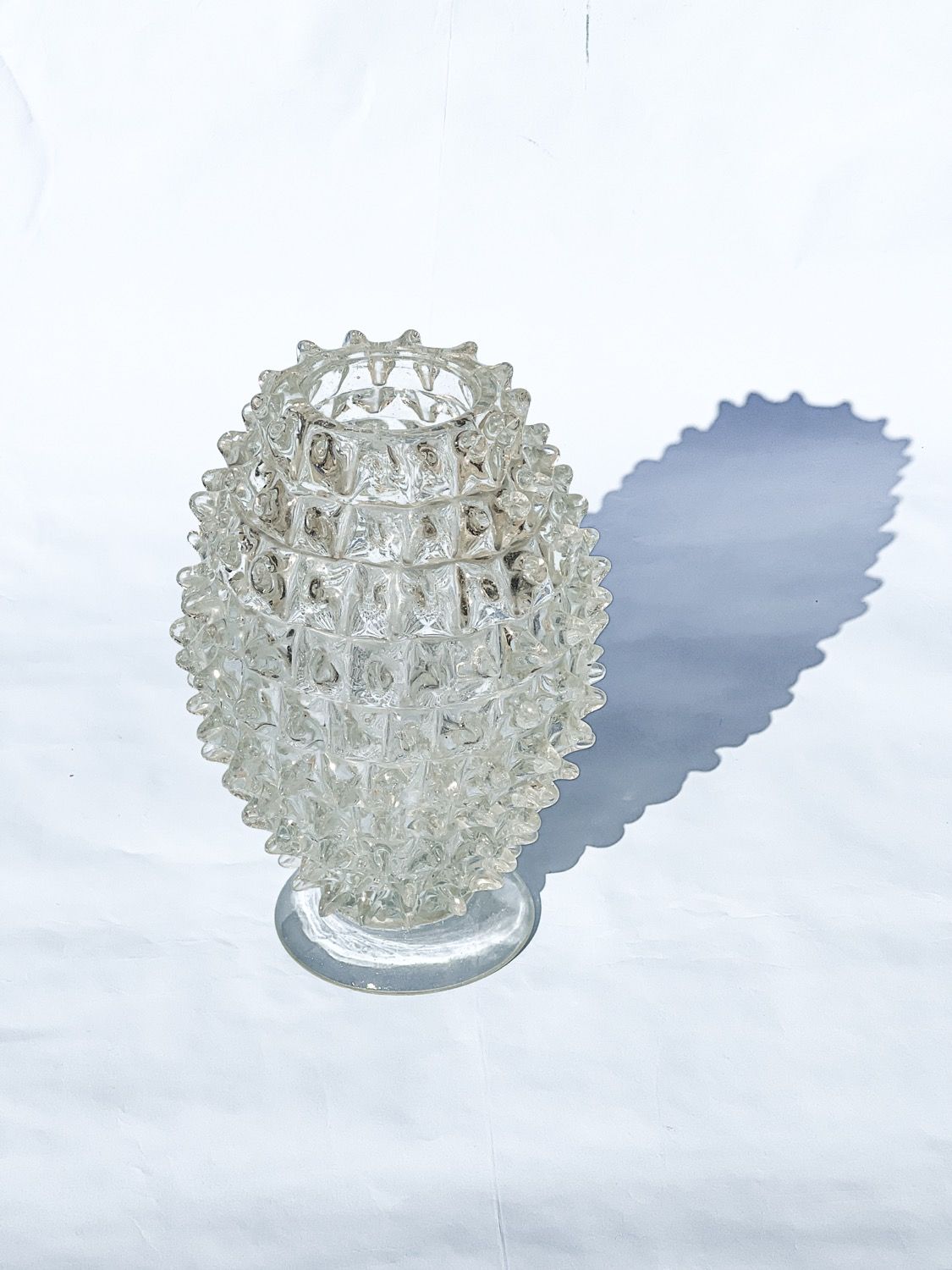 Made in clear “cristallo” glass, and characterized by the spikes (rostri, in italian) protruding from the surface, the pieces are clearly artisanal. Their beauty resides in the small differences between each spike, that give it an irregular, somehow “wabi-sabi” touch.