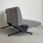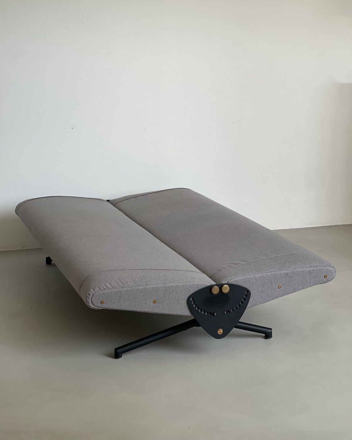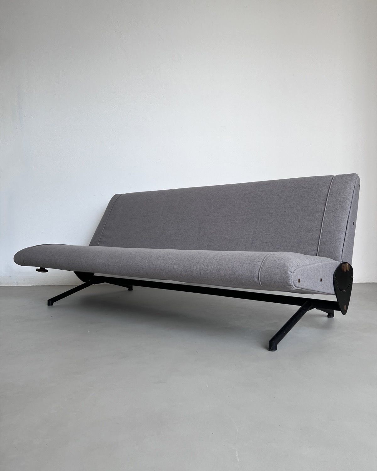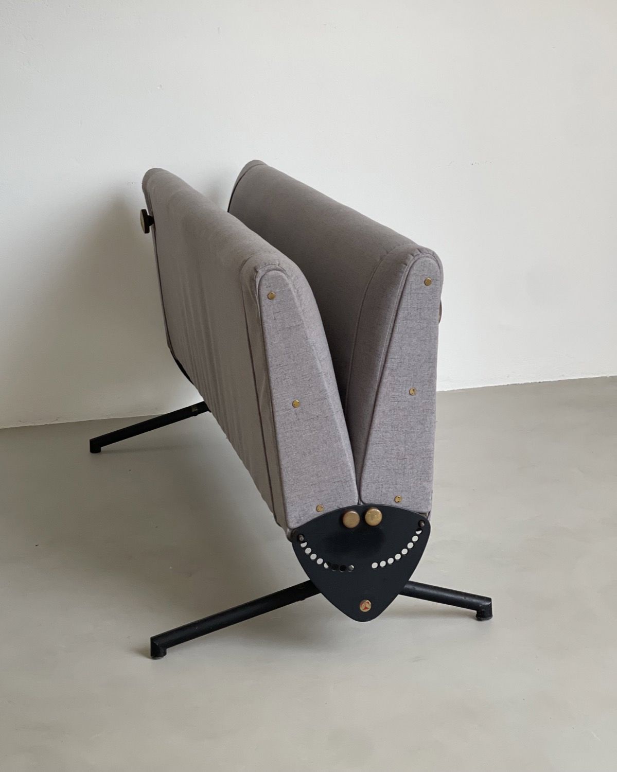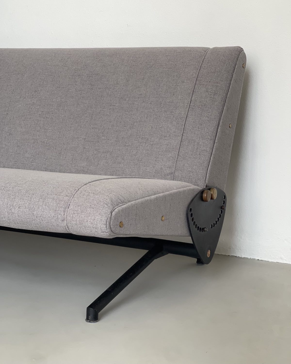 Our D70 has just been redone in grey fabric, and is in stunning conditions. The reclining mechanism works very smoothly on both sides, the legs show nothing more than patina and the original Tecno red logos are still crisp and clearly visible on the side plates.