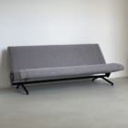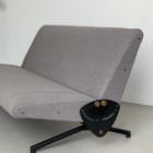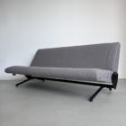 Amongst his most famous design, that skillfully merge industrial materials and refined lines, the P40 lounge chair and D70 sofa stand out for thei ingenuity and beauty. Conceived to be fully swiveling, with adjustable seat and backrest, they offer the maximum flexibility without giving up an inch on style. The sofa, of which a pristine example is offered, can even turn into a bed if the seat and backrest are both placed horizontally.