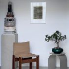Designed to celebrate the timeless elegance of Neoclassical architecture, and named afted Italian architect Andrea Palladio, Palladium has been made in several different versions. The present one is a one-off piece, hand finished with a micro-cement coating in organic tones. It pairs perfectly with organic, Urban Wabi style interiors, like the pictured groupage shows.