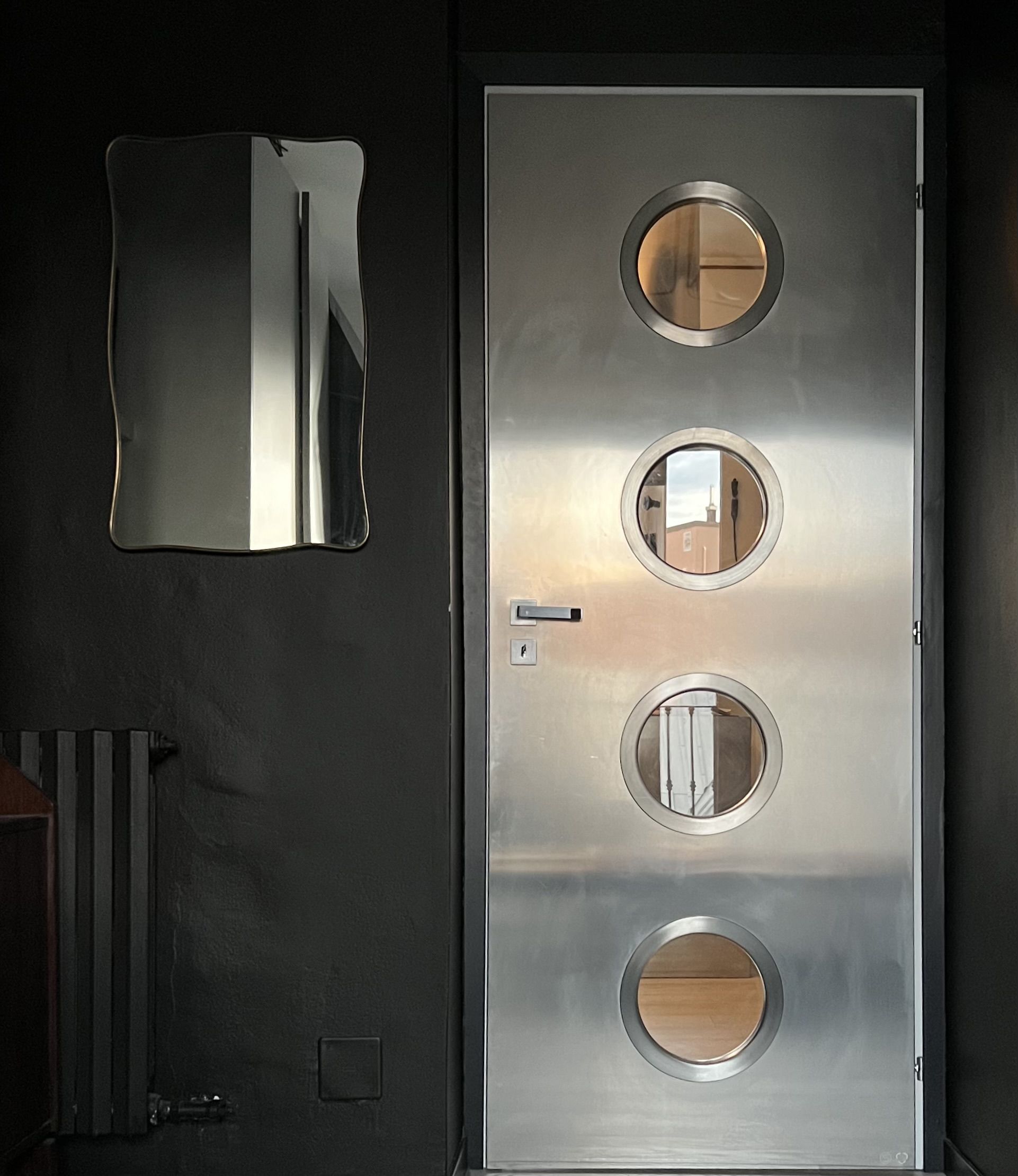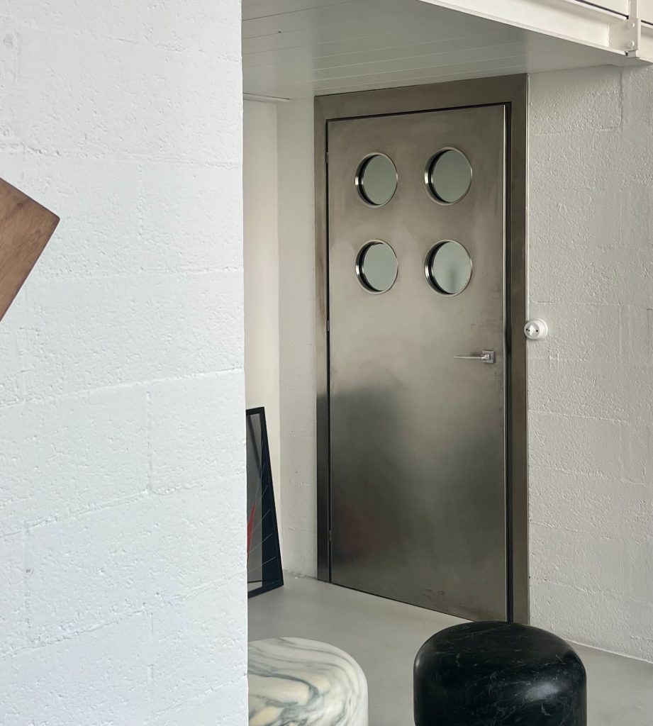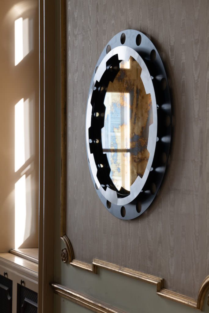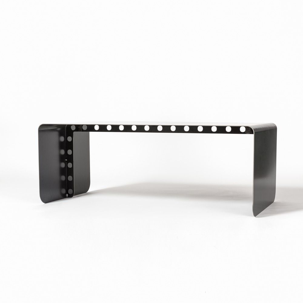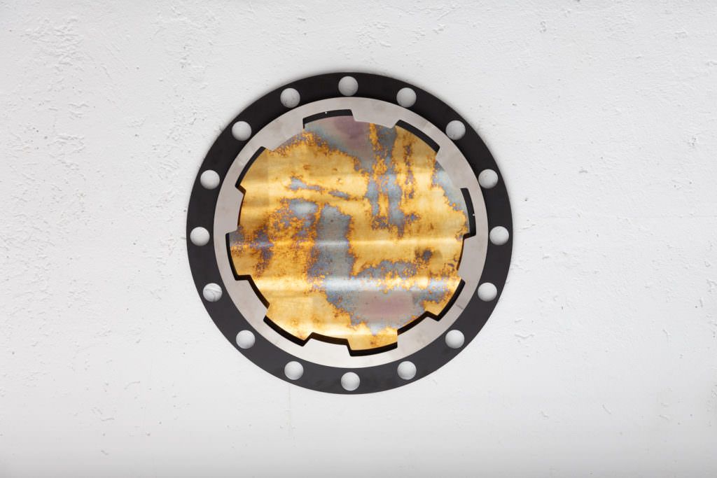 Its connection to the world of mechanics and industry is also highlighted by the finishing of the metal, heat-treated on open fire, thus gaining a unique and mesmerizing patina, which makes every piece absolutely unique and different from any other.